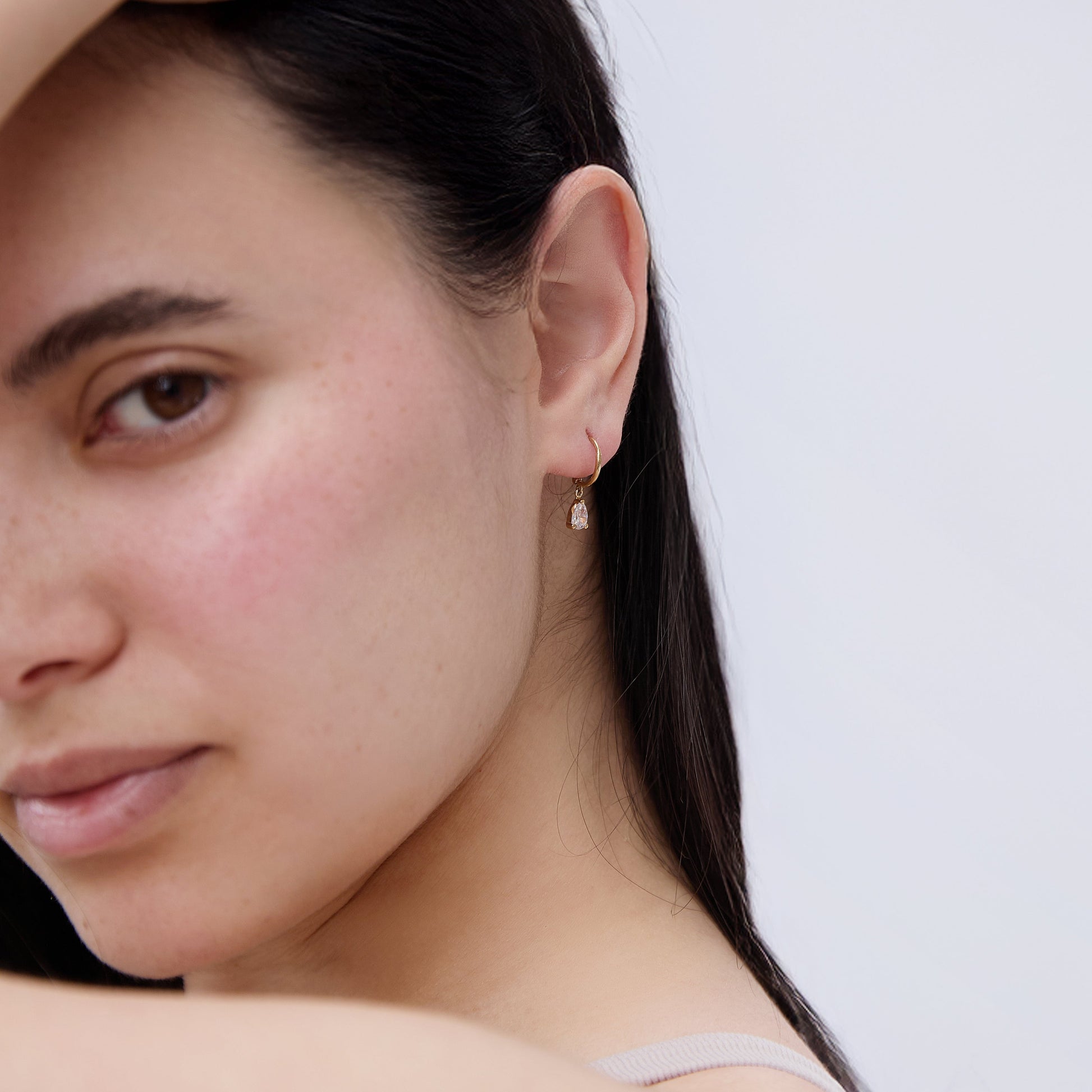 Crafted in 14K gold with a dazzling drop zirconia, the Boss Mama Hoop is your daily reminder that power looks good on you. Bold, radiant, and unapologetically you—because being a mom is your superpower, and shining is your birthright. ✨